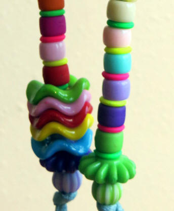 These are a very small, skinny bead with a big hole so it's great for using between beads for added texture and eye appealing color. These are available in three bright, vibrant colors. The photo above shows how skinny these beads are ... perfect for separating pony beads or just adding more whenever you need a skinny filler! (Click here for the size comparison chart)