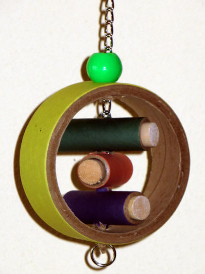 Chewy Chewy is our newest addition to our Mighty Bird Balsa Collection. Chewy has a jumbo bagel with three bagel bird bites that have each have a balsa filling! Pretty perfect, don't you think??? The toy is strung on nickel plated welded chain for added to his durability, with a large marbella bead on top for added texture and motion. Topped by a pear shaped quick link for easy hanging ... this is a fun, shredable toy for those Busy Beaks in your house that enjoy soft, chewable balsa! If your parrot loves balsa ... check out this page!