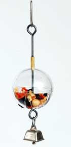 Polycarbonate Plastic and Stainless Steel foraging toy for your mid to larger sized feathered companions! You can use the Stainless Steel rod as a skewer (as shown in photos) for carrots or other goodies to add to the fun! Quick link on top for easy hanging and a cowbell on the bottom for a ringing good time! Use your imagination with this toy and put a smile on your parrot's beak! Also, check out the