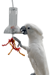 The Capsule arrives empty and ready for you to fill with your parrots favorite goodies. Offer only dry, healthy treat foods in these feeders, empty them often to avoid spoilage! You can wash all acrylics in one part bleach, 3-4 parts water, rinse thoroughly and air dry!