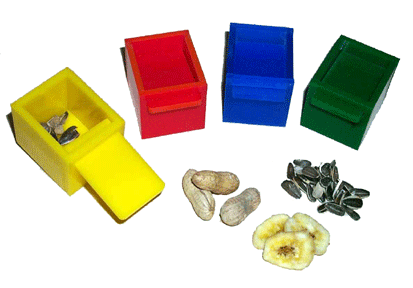 shape (2" x 1-3/4") but in different colors (so your bird will concentrate on the color,