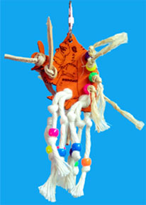 What a great shape, a gorilla and his banana! These are toys especially for the smaller to mid-sized FIDs in your house! The extra small comes in wood with lots of dangling interest for the smaller beaks in your life.