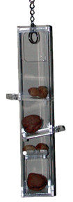 A new foraging toys from Zoo Max for your FIDs! You can place pelleted food, almonds, walnuts, pistachios, pine nuts, cereal, JUST fruit, Just veggies (see our "munchies" section) or other dry items in the Nut Drop, which attaches to your cage with nickel plated chain and a quick link. Made out of sturdy acrylic, your bird will need to learn how to pull the levers back to release the treats (NUTS NOT INCLUDED)! Then sit back and watch your feathered companions trying to get the goodies. Lots of fun for medium sized birds. This toy is NOT suitable for especially destructive beaks and/or large macaws and cockatoos. NOTE: You can wash all acrylics in one part bleach, 3 parts water, rinse thoroughly and air dry!