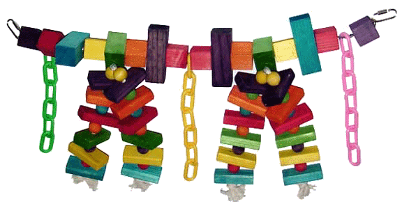 rectangular blocks, all strung on nickel plated welded chain with quick links on