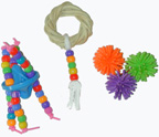 Yet another wonderful assortment of foot toys for your small to mid-sized FIDs! More shapes, textures and ridges to enchant the parrots in your life! So many choices!!