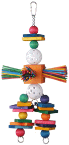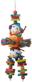 If you're bird loves peeling sticks (our eclectus are particularly fond of the stick toys like the paper party), then your bigger beaks should love this toy! Strung on nickel plated welded chain throughout for added durability, this toy has a little something for every birdie! The XL has a couple stuffed whiffles while the large has smaller whiffle balls, lots of colorful wooden pieces for shredding fun! Perfect for those mega beaks in your house! For even more stick toys, click here ...
