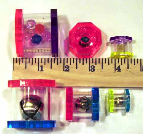 This octagon shaped toy offers different angles for tongue teasing pleasure plus there is a size for all parrots in this assortment of foot toys! Choose either beads or bells, which are enclosed in an acrylic cylinder between the octagon acrylic shapes, or keep both on hand and rotate the fun! EVERYbirdy has a choice here! Beads