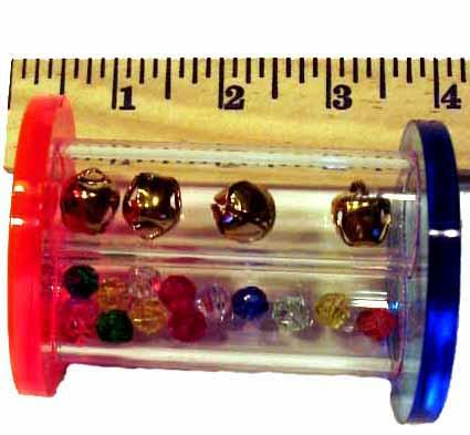 Zippy Roller Foot Toy Measuring almost 3.5" long x 3" diameter top and bottom has 2 cylinders filled with bells and beads! A great new addition to your foot toy collection-geared towards those bigger beaks with bigger feet!