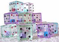 Strong Acrylic 3/4" Clear Colored Dice with smaller die in side! Pleasant sound, nice addition to your foot toy basket!