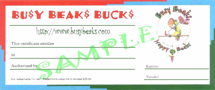 BUSY BEAKS BUCKS are available in $10 denominations. Order as many as you need.