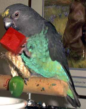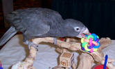 Choon Choon, Brown Throat Conure had been a chronic egg layer for about 8 years, never playing with a toy