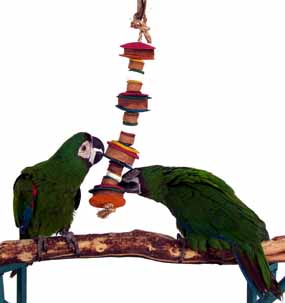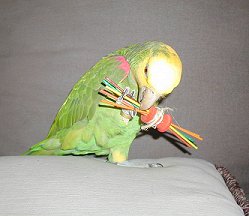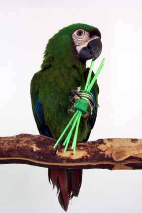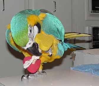 Military Macaw, Clancy, loves everything his beak can destroy. Here he's working on a