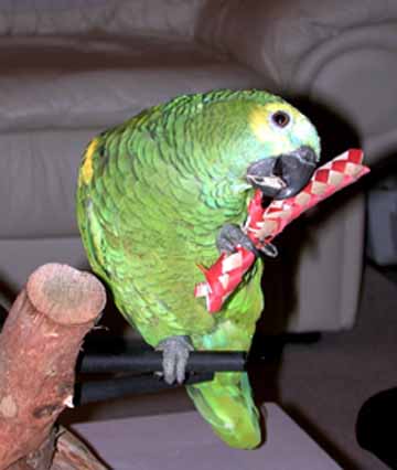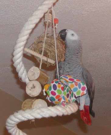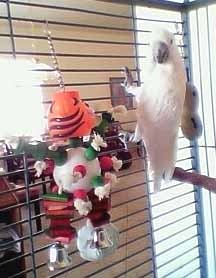 What a Lucky Bird! Boomer has his very own tree as a play stand and