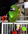 Wolfy lives in Japan with another CAG, Opaa and brown throat conure Choony, is pictured here "working" on his NTWBs! |